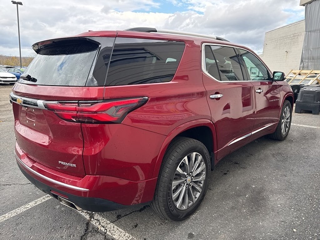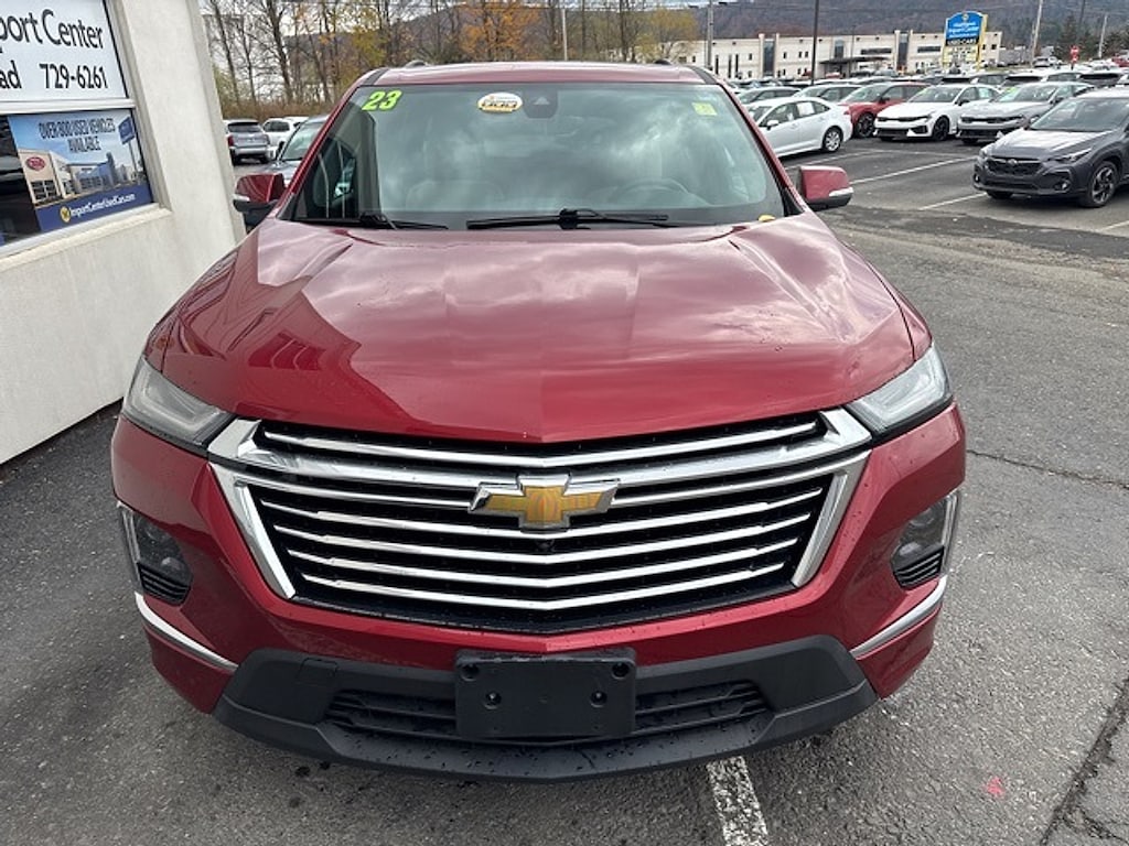 Matthews Import Center promises each customer a thorough and confident 120-point inspection on our used inventory guaranteeing a relaxing and peace-of-mind experience. We are located behind Lowes in Vestal NY. Or call us at (607) 729 - 6261Matthews Import Center3013 Old Vestal RoadVestal NY 13850. Radiant Red Tintcoat 2023 Chevrolet Premier Traverse AWD 9-Speed Automatic 3.6L V6 SIDI VVTOdometer is 1089 miles below market average!