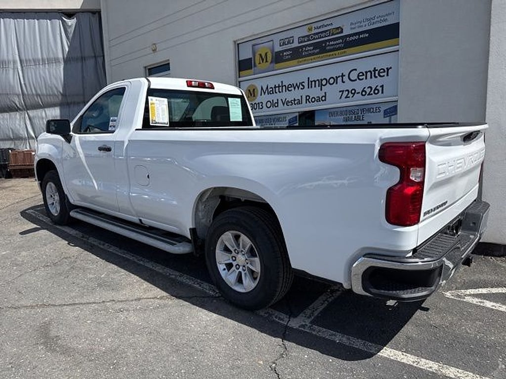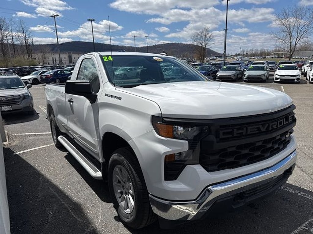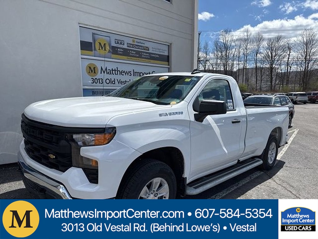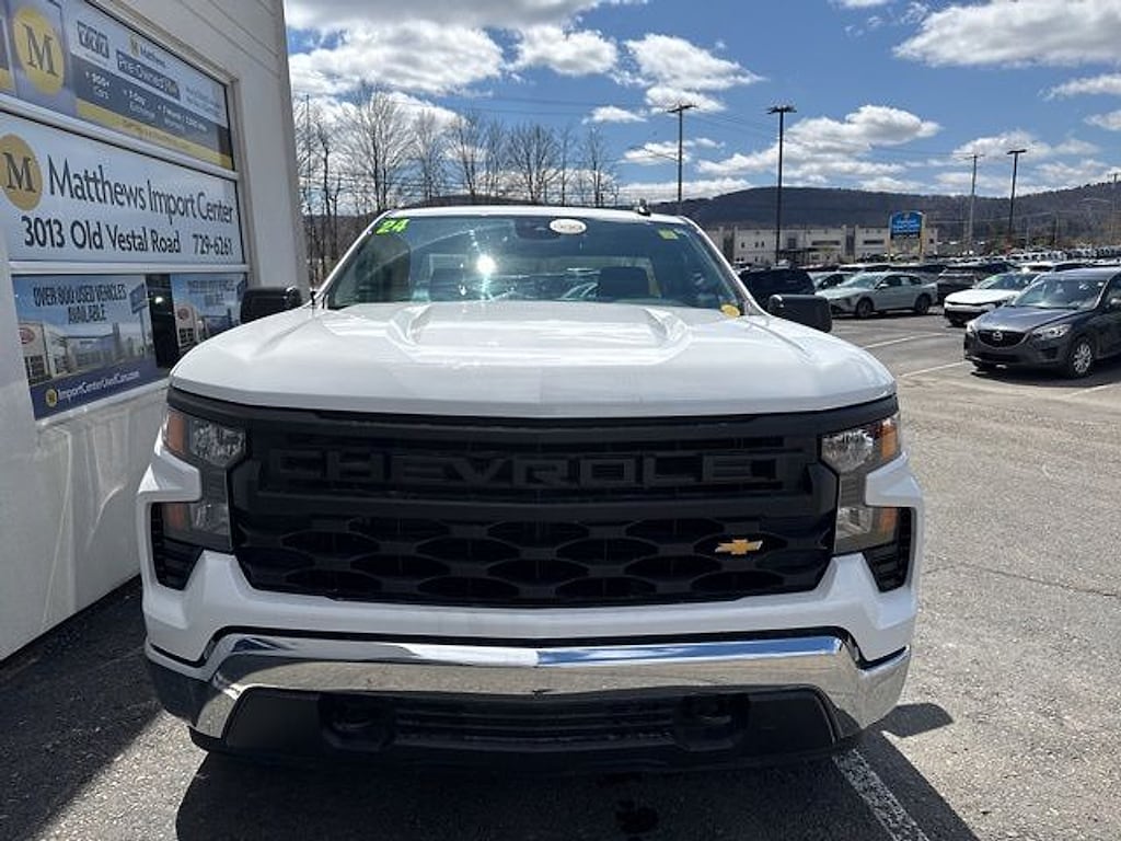 Matthews Import Center promises each customer a thorough and confident 120-point inspection on our used inventory guaranteeing a relaxing and peace-of-mind experience. We are located behind Lowes in Vestal NY. Or call us at (607) 729 - 6261Matthews Import Center3013 Old Vestal RoadVestal NY 13850. Summit White 2024 Chevrolet WT Silverado 1500 RWD 10-Speed Automatic EcoTec3 5.3L V8