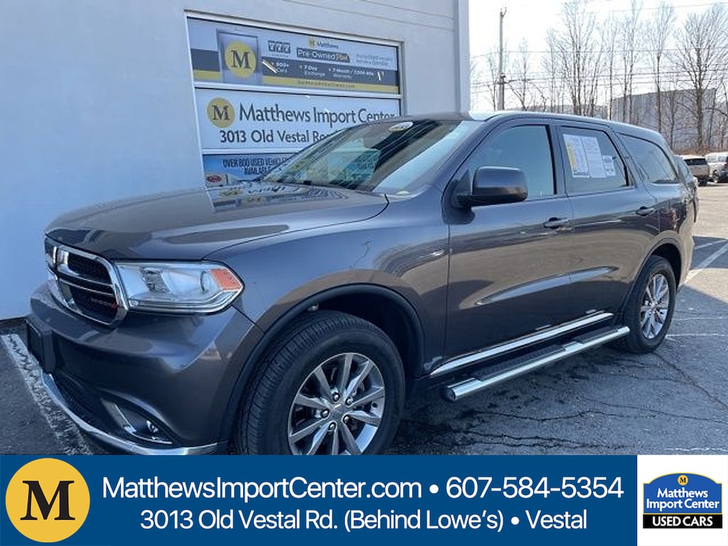 Granite Metallic Clearcoat 2018 Dodge Durango SXT AWD 8-Speed Automatic 3.6L V6 24V VVTMatthews Import Center promises each customer a thorough and confident 120-point inspection on our used inventory guaranteeing a relaxing and peace-of-mind experience. We are located behind Lowes in Vestal NY. Or call us at (607) 729 - 6261 Matthews Import Center 3013 Old Vestal Road Vestal NY 13850.Odometer is 18599 miles below market average!