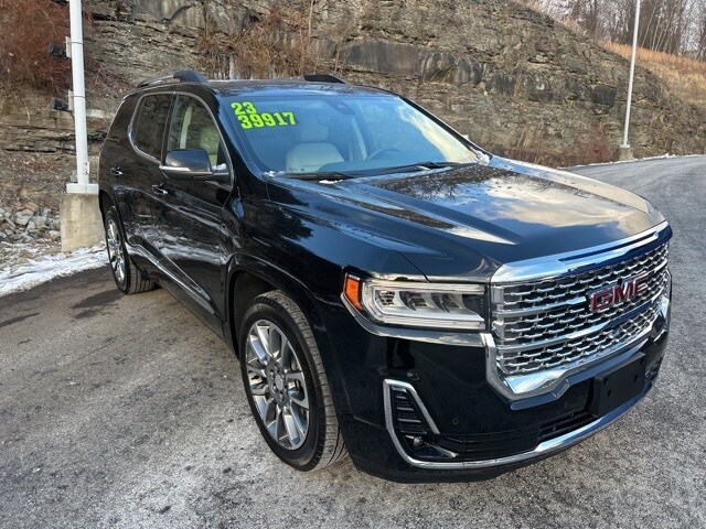 Ebony Twilight Metallic 2023 GMC Acadia Denali AWD 9-Speed Automatic 3.6L V6 SIDI AWD, Dark Galvanized/Light Shale Leather.