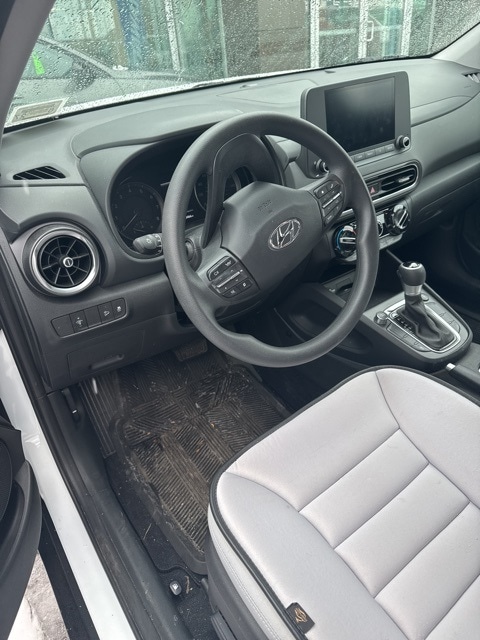 Lunar White 2023 Hyundai Kona SEL AWD CVT 2.0L I4 DOHC Dual CVVT 17" x 7.0J Alloy Wheels, 4-Wheel Disc Brakes, 5.715 Axle Ratio, 6 Speakers, ABS brakes, Air Conditioning, Alloy wheels, AM/FM radio: SiriusXM, Apple CarPlay & Android Auto, Brake assist, Bumpers: body-color, Cargo Net, Cargo Tray, Carpeted Floor Mats, Cloth Seat Trim, Delay-off headlights, Driver door bin, Driver vanity mirror, Dual front impact airbags, Dual front side impact airbags, Electronic Stability Control, Emergency communication system: Blue Link Connected Car Service (3-year complimentary subscription), Exterior Parking Camera Rear, Four wheel independent suspension, Front & Rear Mudguards, Front anti-roll bar, Front Bucket Seats, Front Center Armrest, Front reading lights, Fully automatic headlights, Heated door mirrors, Illuminated entry, Low tire pressure warning, Occupant sensing airbag, Option Group 01, Outside temperature display, Overhead airbag, Overhead console, Panic alarm, Passenger door bin, Passenger vanity mirror, Power door mirrors, Power driver seat, Power steering, Power windows, Radio: AM/FM/HD/SiriusXM Audio System, Rear anti-roll bar, Rear seat center armrest, Rear window defroster, Rear window wiper, Remote keyless entry, Security system, Speed control, Speed-sensing steering, Split folding rear seat, Spoiler, Steering wheel mounted audio controls, Tachometer, Telescoping steering wheel, Tilt steering wheel, Traction control, Trip computer, Turn signal indicator mirrors, Variably intermittent wipers.