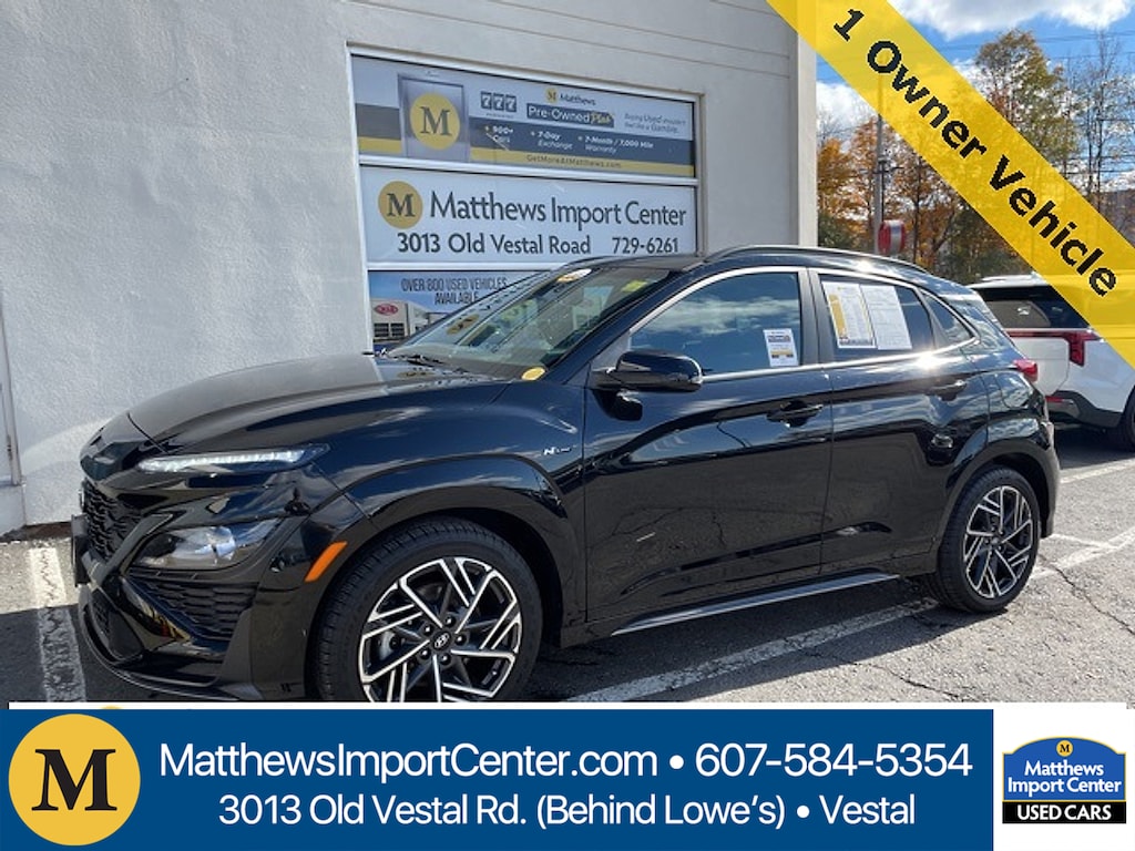 Matthews Import Center promises each customer a thorough and confident 120-point inspection on our used inventory guaranteeing a relaxing and peace-of-mind experience. We are located behind Lowes in Vestal NY. Or call us at (607) 729 - 6261Matthews Import Center3013 Old Vestal RoadVestal NY 13850. Ultra Black Pearl 2023 Hyundai N Line Kona AWD Shiftronic I4Odometer is 15700 miles below market average! 27/32 City/Highway MPG