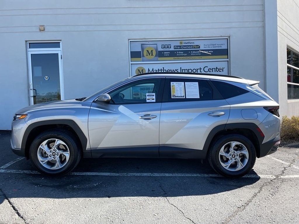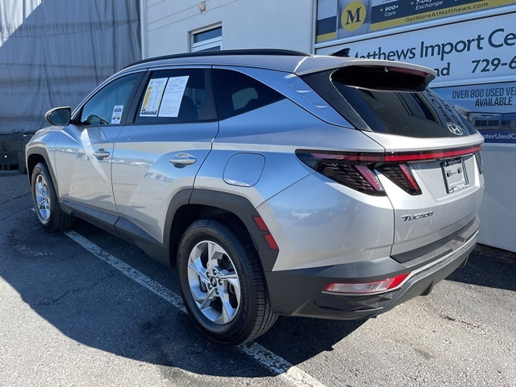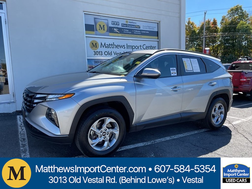 Matthews Import Center promises each customer a thorough and confident 120-point inspection on our used inventory guaranteeing a relaxing and peace-of-mind experience. We are located behind Lowes in Vestal NY. Or call us at (607) 729 - 6261Matthews Import Center3013 Old Vestal RoadVestal NY 13850. Shimmering Silver 2023 Hyundai SEL Tucson AWD 8-Speed Automatic with SHIFTRONIC 2.5L I4 DGI DOHC 16V LEV3-ULEV70 187hp23/28 City/Highway MPG